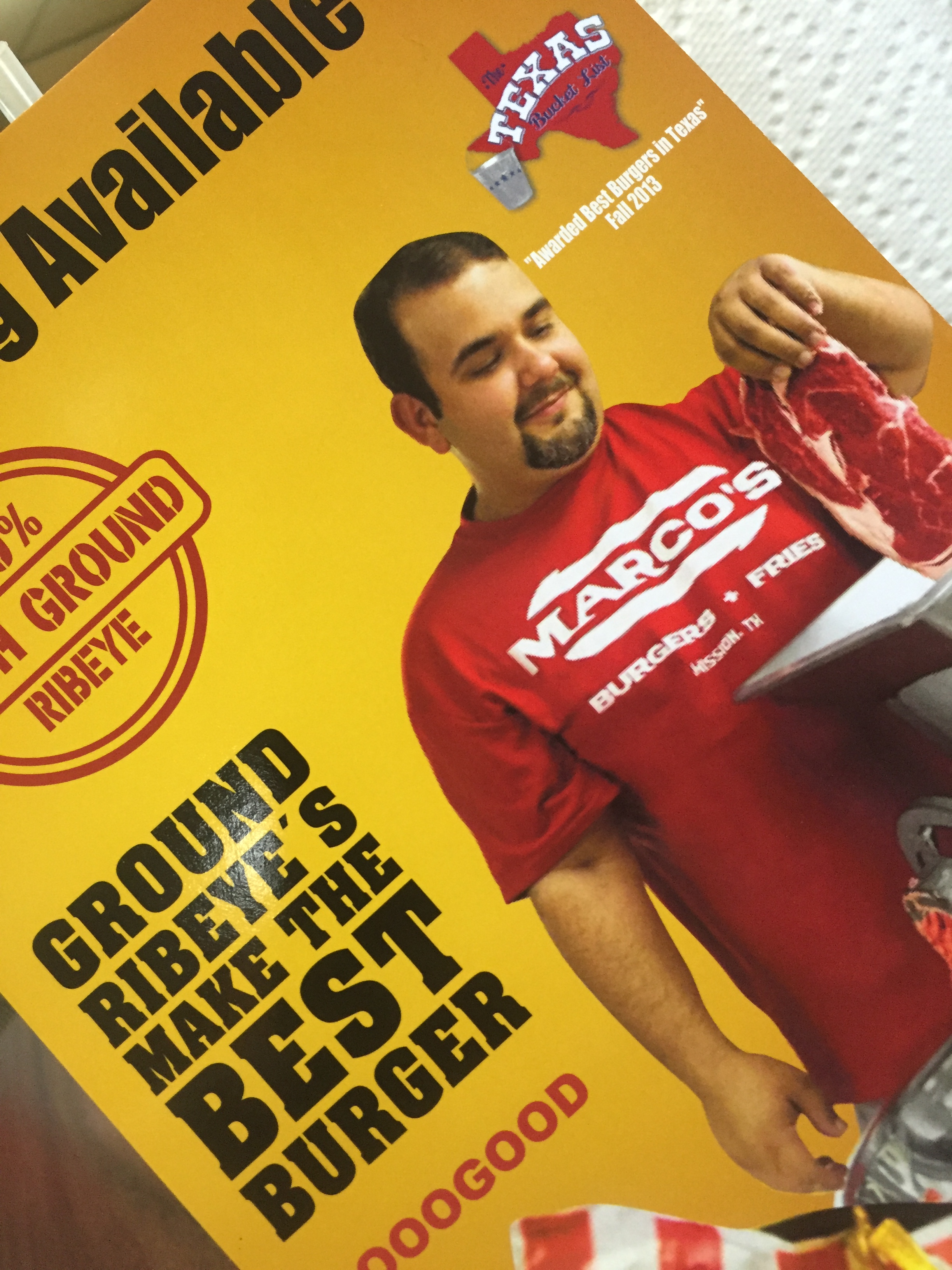 I visited another highly-rated burger joint in the Valley on this road trip. But, I have to say that I found that experience somewhat disappointing and have placed that burger on my list of places I will not blog about. Thankfully, Marco’s Burgers and Fries redeemed this road trip in regard to my search for a memorable burger experience. It’s no wonder that Marco’s Burgers was awarded Best Burgers in Texas on the Fall 2013 season of The Texas Bucket List.