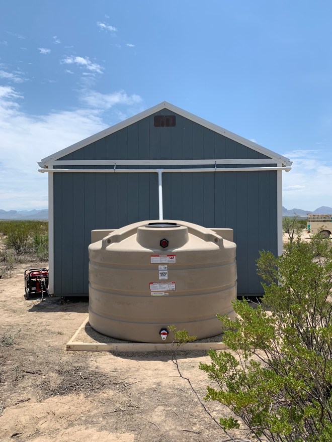 The annual rainfall in Big Bend is somewhere around 12-inches per year. For off-gridders in the area, this rainfall (even if intermittent) presents the opportunity to resupply their water catchment tanks. I know that 12-inches does not sound like a lot of rain, but 12-inches of rain captured on just 500 square feet of roofing can yield as many as 3,700 gallons of water.
