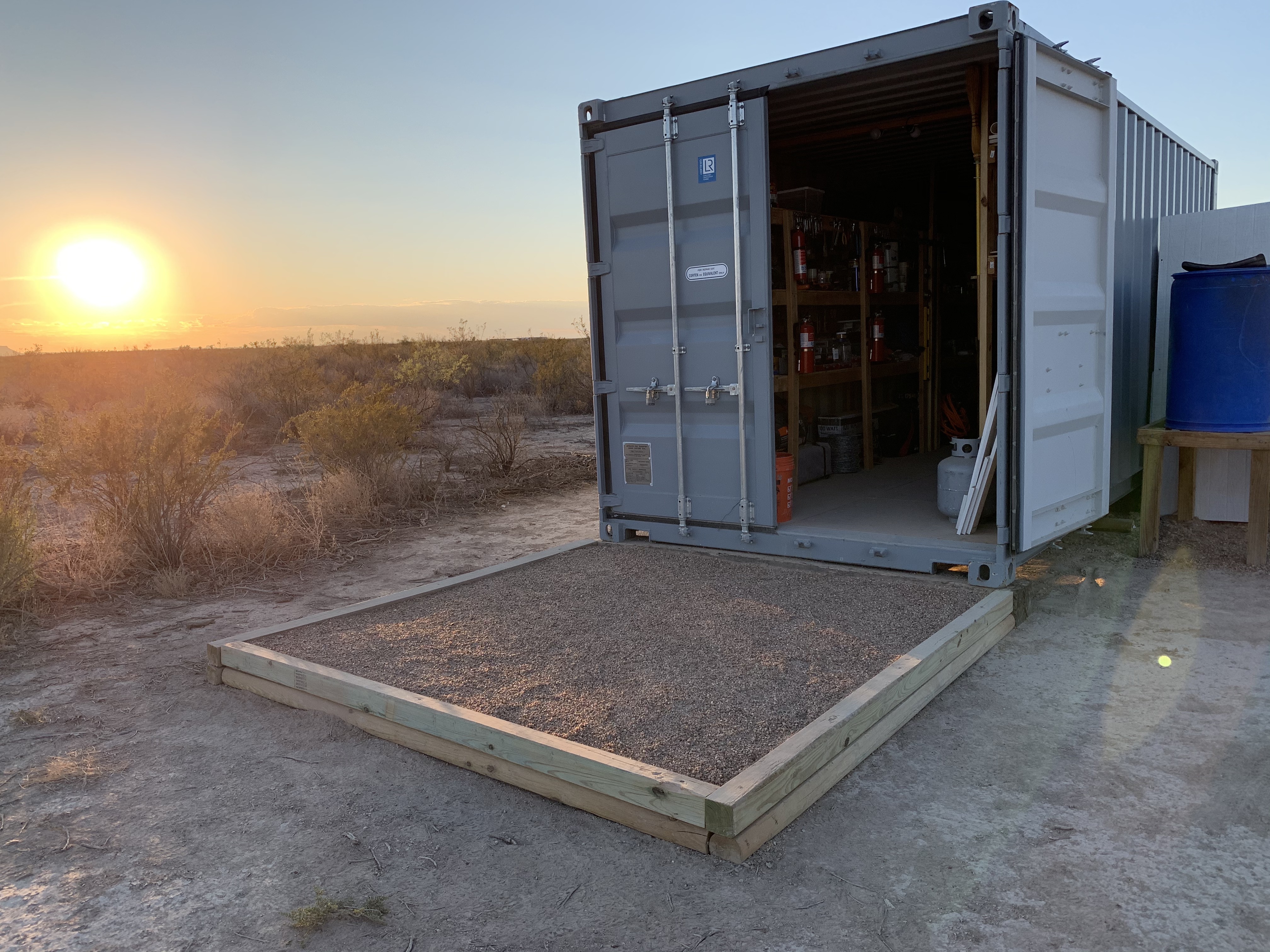 I also added a deck of sorts to my shipping container workshop. For the time being, I packed dirt into the frame and then topped it off with a layer of pea gravel. In the future I will add pavers to make this area even more usable. On a previous trip I added solar power to the container so that I can have lights and operate power tools without having to run an extension cord to the cabin. Small steps toward convenience.