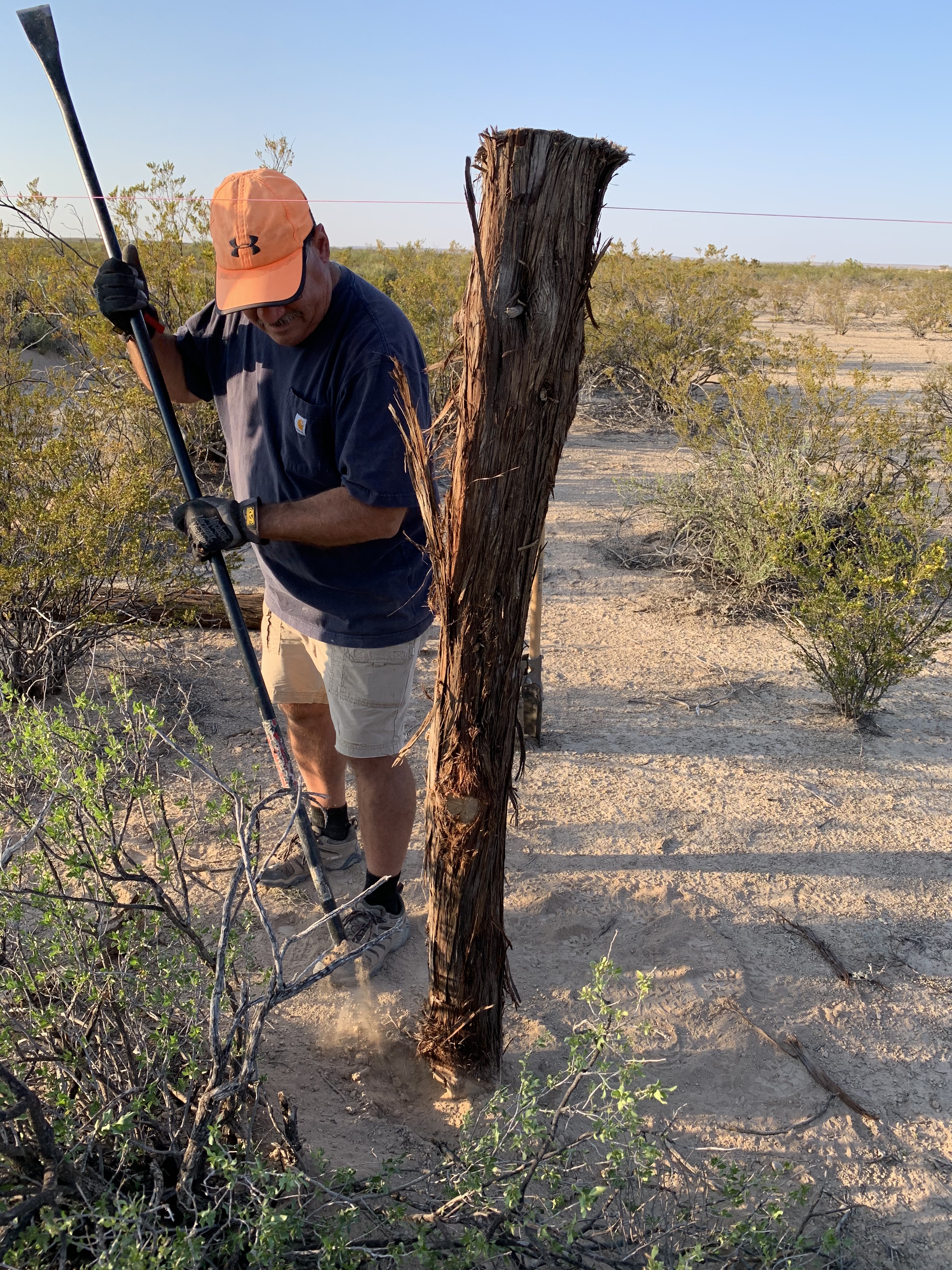 The first thing I did after filing our paperwork at the Brewster County Clerk’s office was to arrange to have the tract surveyed. Once the survey was completed, I made a trip to the cabin to check the survey monuments and to take down a 100+ year-old fence running across the property.