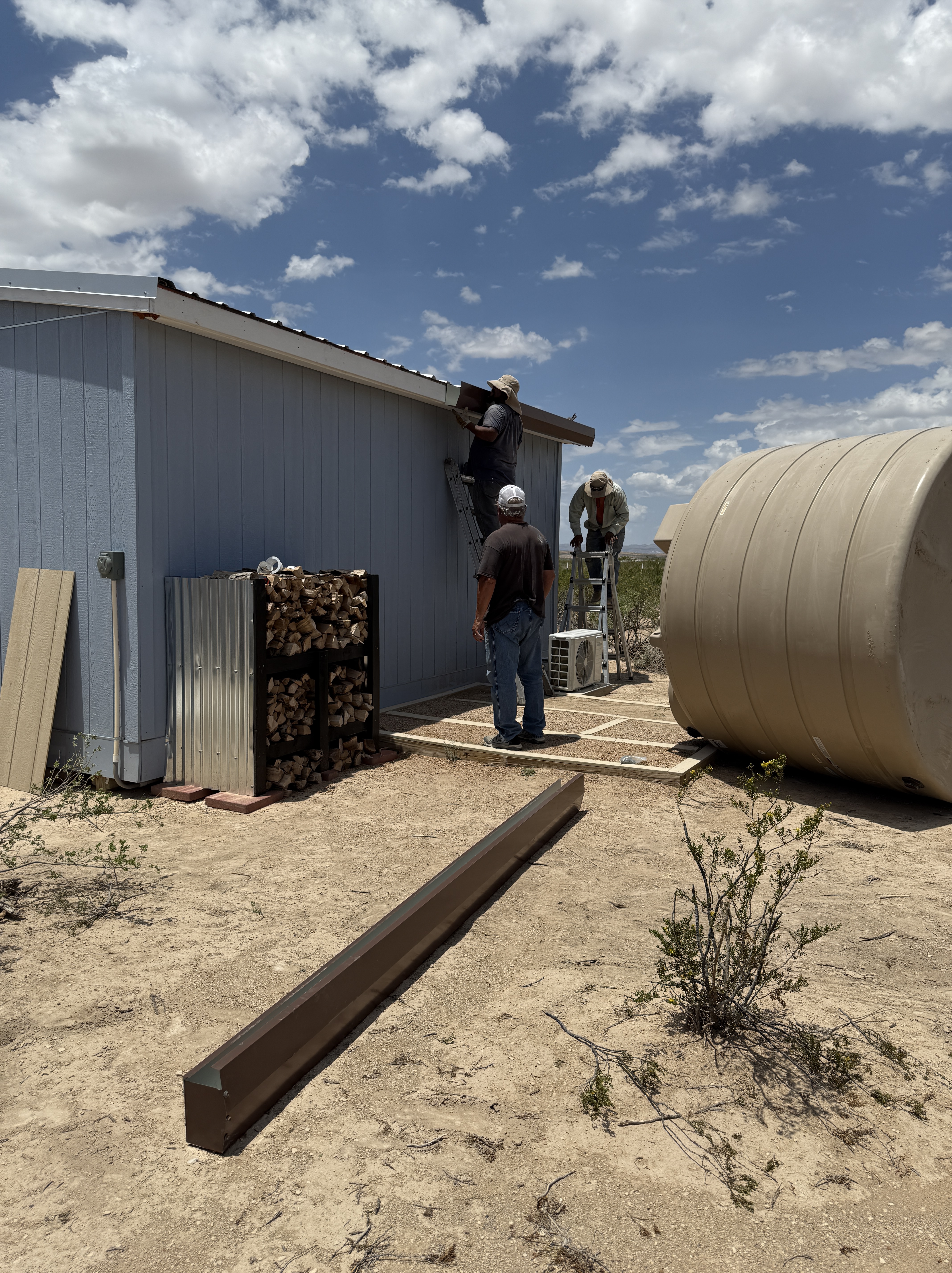 A few hours after Mark installed the tank the monsoon rains came roaring in. What timing! And, with a few more light rains, we now have 400-gallons of water in this 1,200 gallon storage tank. Water catchment and stewardship in the desert is important. Grateful to have this tank which now gives us 3,400 gallons of water storage capacity.
