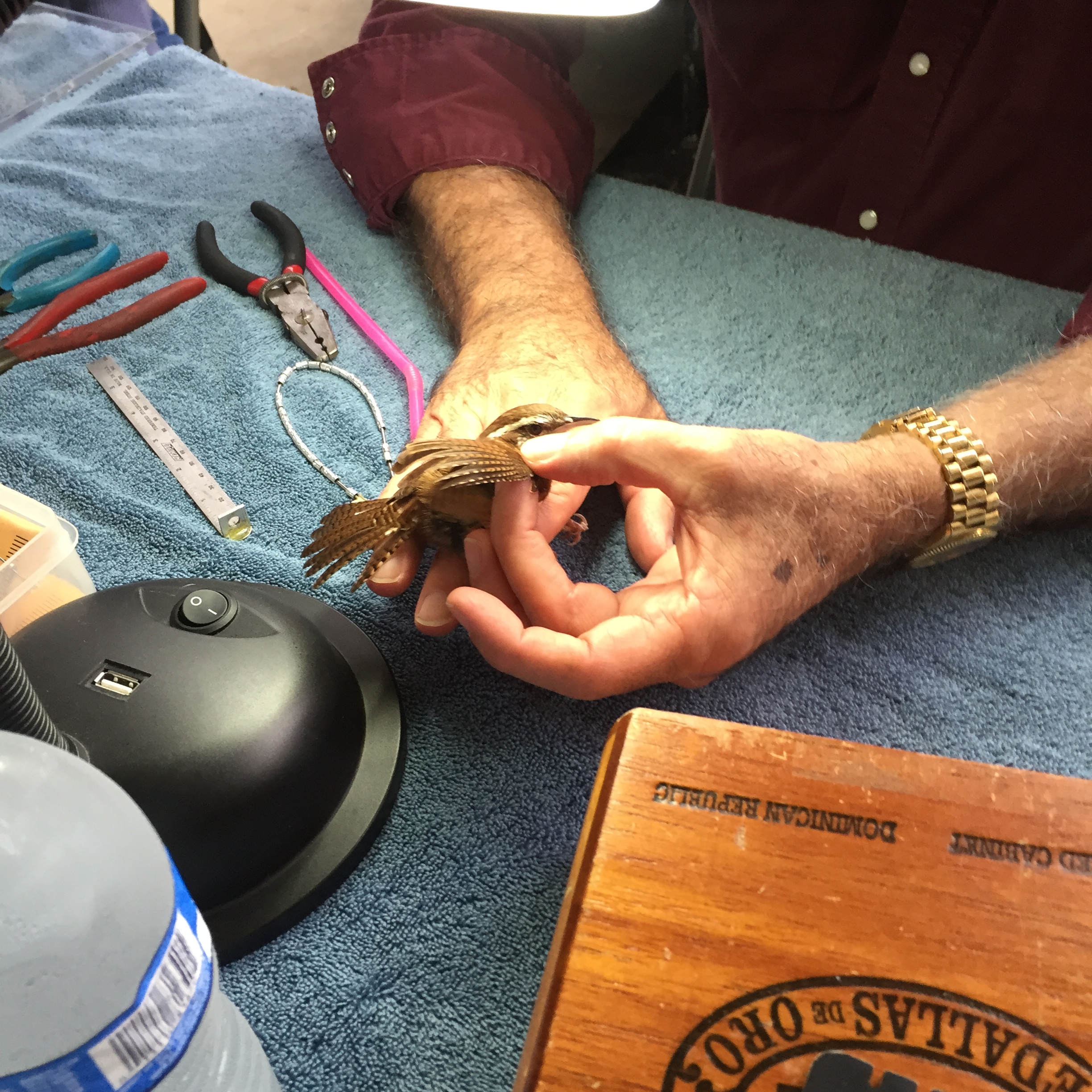 I found the whole banding experience fascinating to watch. I have never before had an opportunity to see such a variety of beautiful birds so up close and personal. Robert and Kay handled each bird with the utmost care and recorded every detail about each of the birds — weight, wingspan, body fat, and more. They know their stuff and answered a lot of questions from those of us in attendance.