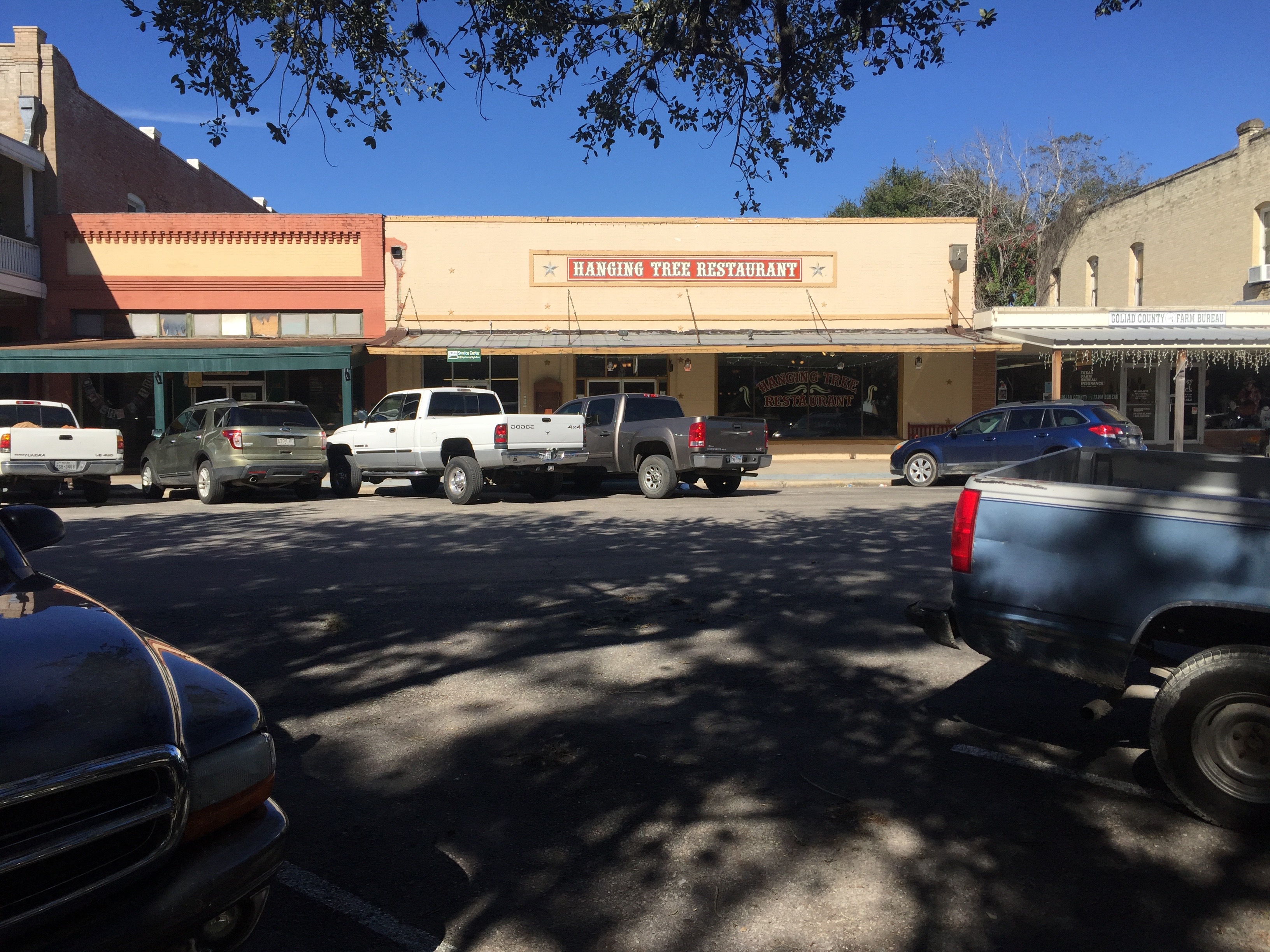 Bottom line — I’m glad I stopped to eat at the Hanging Tree. Absolutely enjoyed my cheeseburger and onion rings. Also enjoyed the ambiance of the place and the big picture window that frames the hanging tree on the courthouse lawn across the street. I am happy to add the Hanging Tree to my list of interesting places in Texas to eat a delicious hamburger.