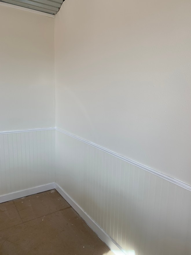 After laying the floor, I used decorative trim rather than quarter-round to finish the baseboard. I then filled in the nail holes in the trim with wood-filler, ran a bead of caulk around the perimeter, and finished with semi-gloss touch-up paint. Amazing how little details make such a big difference.
