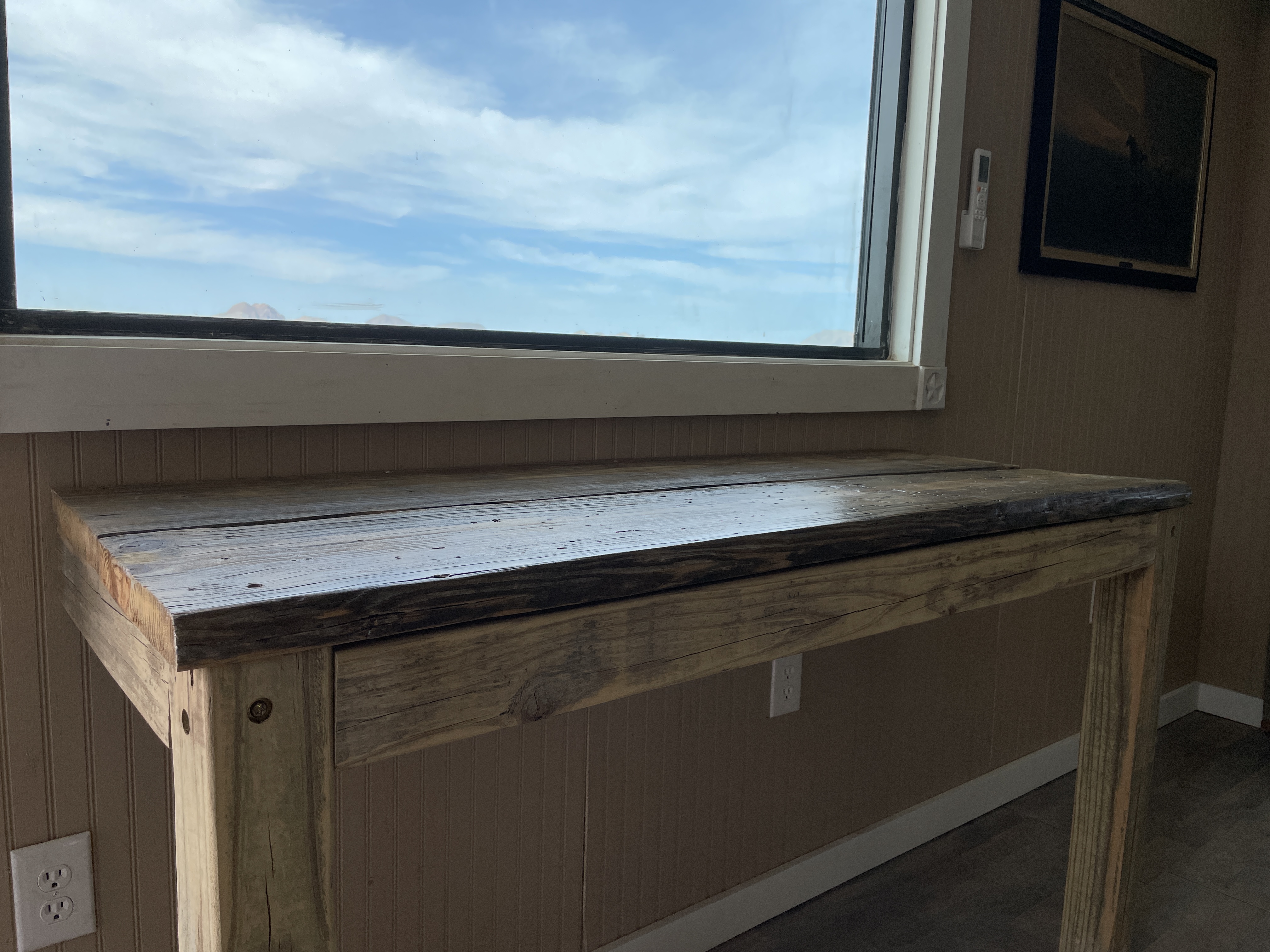 When I finally saw the rot board I knew immediately that it was perfect for my next project at our guest cabin in Big Bend — a small countertop in front of the large window with a view to Red Bluff. I could not wait to repurpose these 12-inch boards and started drawing out my plans.