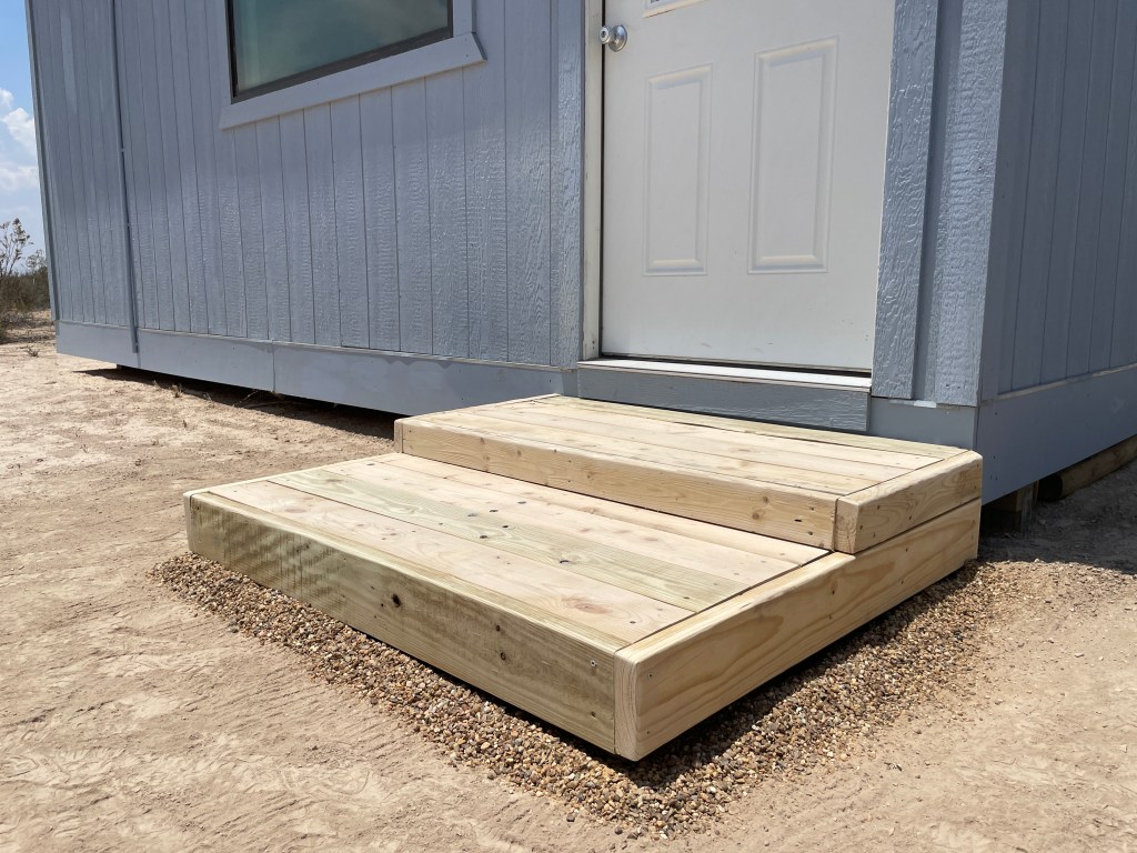 I finally got around to making a set of temporary steps into the cabin. We will replace these when we add the front deck that will span the length of the cabin and be shaded by a solar panel awning.